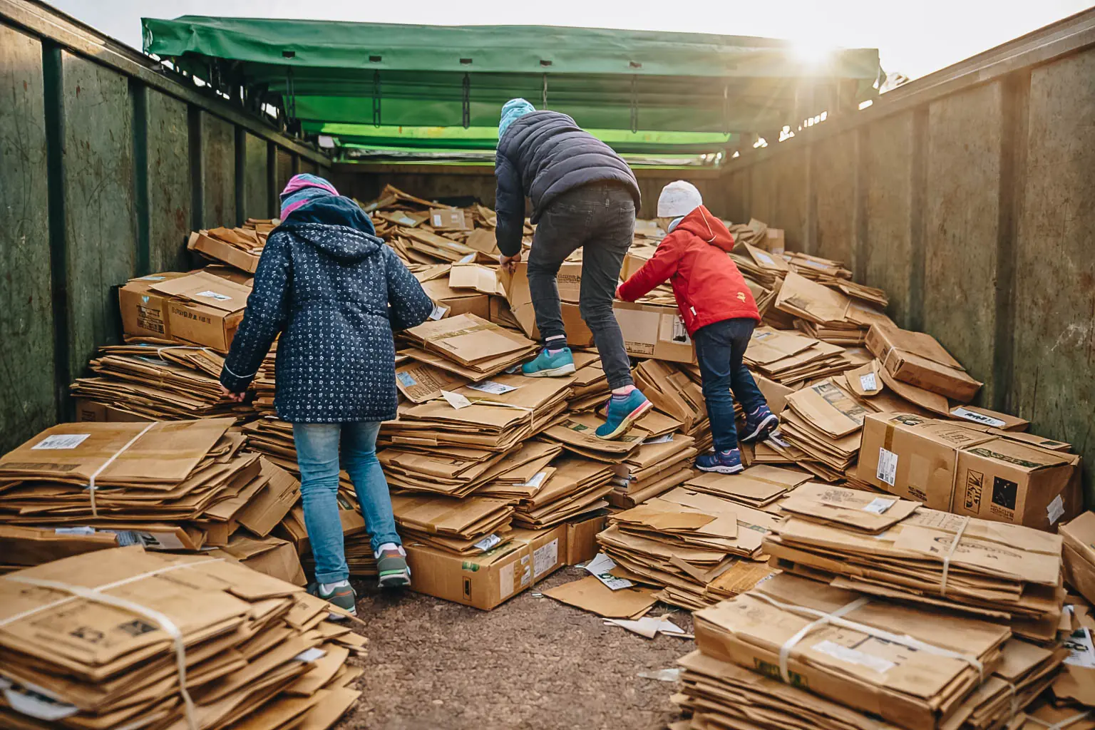 Das gesammelte Papier bringen wir zu einem Recyclinghof.